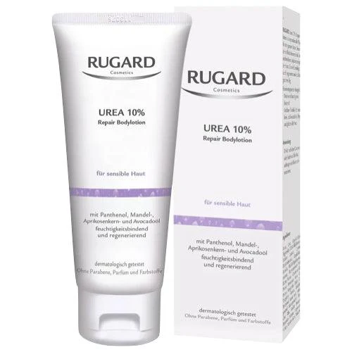 שומני העור עצמו אובדים עקב סיבון ומקלחת רבים מדי, ולעתים קרובות אינם מתפרקים מספיק מהר על ידי העור. השמנים (שמן גרעיני משמש, אבוקדו, שמן גרעיני שקדים) הכלולים בקרם הגוף Rugard Urea 10% Repair, יחד עם פנתנול, מותאמים בדיוק לצרכים של עור תובעני ומטפלים בצורה אופטימלית בעור יבש במיוחד הנוטה לגרד.