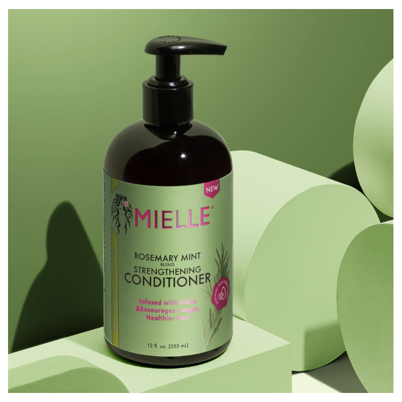 🌿 מרכך חיזוק לשיער ברוזמרין ונענע עם ביוטין – Mielle Organics – 355 מ״ל