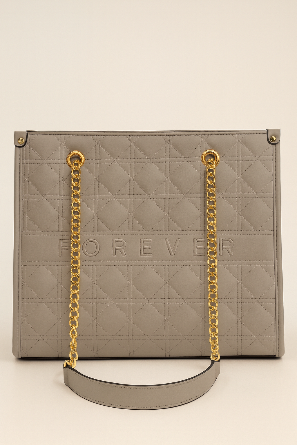 شنطة جلد رمادية ماركة FOREVER بسلسلة ذهبية